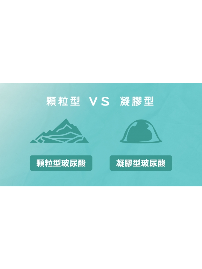 玻尿酸依照製程與質地不同,大致可分為兩大類型:顆粒型玻尿酸與凝膠型玻尿酸。兩者在質地、延展性、支撐度與適用部位上各有特色,並沒有絕對好壞,重點在於是否適合施打部位與個人需求。